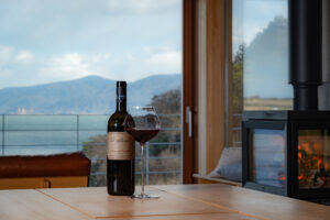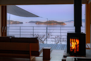 薪ストーブに火が入る冬の季節には、パチパチというやさしい音と、海を背景に揺れる炎が重なります。